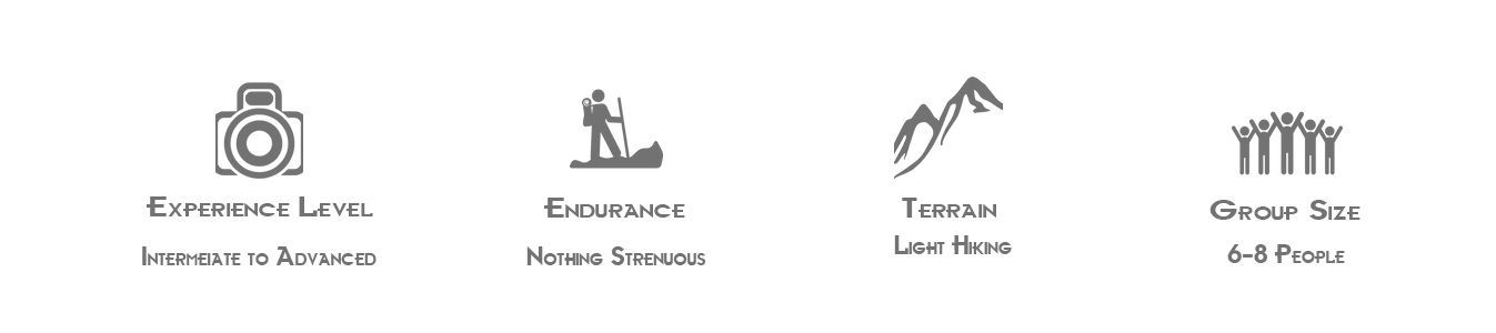 This workshop includes a reasonable amount of walking or hiking and requires an average level of physical fitness. We will have large buses taking us all over so walking can be more some days and less other days with water bottles available every day in our buses.